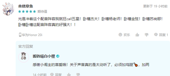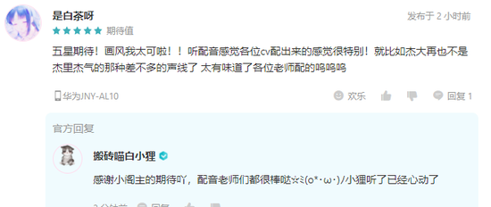 不少对CV老师很熟悉的玩家们说,“阿杰老师终于配“霸总”了!”靖远侯宁北在阿杰老师演绎下竟然完全不出戏;苏尚卿用鲜活的少年音,生动刻画出天降竹马少年奶狗役;巨贾东家祁清和在北哥金弦的演绎下,让人忍不住想去探寻温柔外表隐藏的另一面;杨天翔则将淡漠傲然的“白毛无口男”沈既明展现得恰到好处,让你完全听不出的还有那只鹦鹉竟然也是天老师的“精分”之作;而钱文青则是玩家们发现的宝藏,他用特别的“醉腔”“病娇腔”完美演绎了既是优雅撩人又情感复杂的府乐安歌,让玩家大呼惊喜。