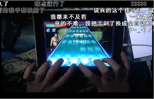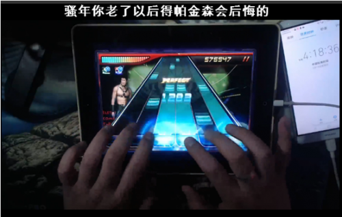 整个视频只能看见平板上的光影和主播手指的在不断抖动,根本看不清游戏所给出的按键指令,这对玩家手速和反应速度都提出了极高要求,堪称“六指琴魔”。