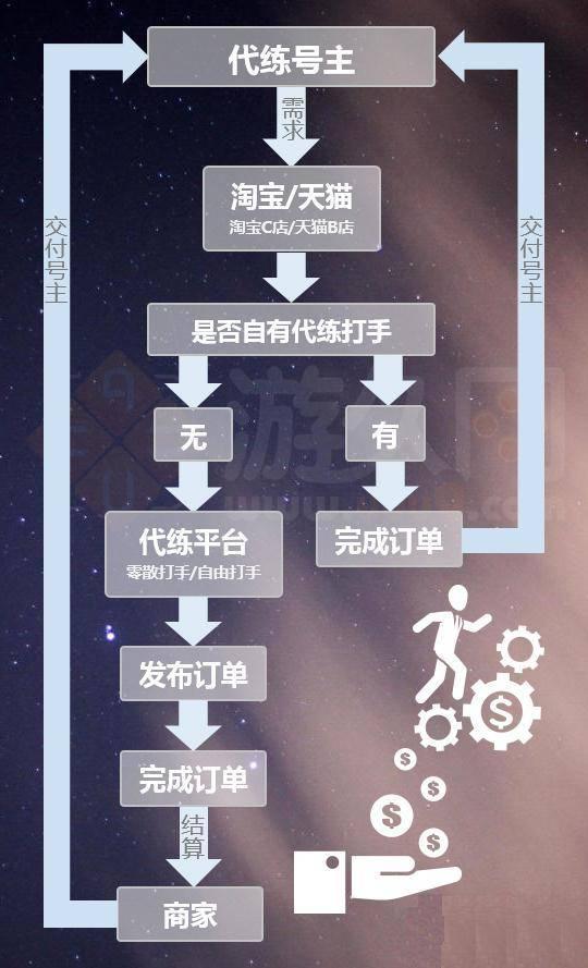 我们可以通过一张代练作业流程图来进行一点初步的认识。