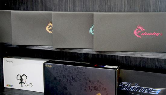 成为朋友之后,韩睿也开始了收藏之旅,每一年的生肖年限定版皆一一收藏,更在龙年限定版键盘推出4种轴体黑轴、青轴、茶轴、红轴共4种版本时,因为每种轴体的外包装都不同,就直接一次收了4把键盘来收藏。后来,对于非限定版的键盘而言,从Shine、One、Zero等叫的出的名字全部都有,有时同样在One的型号中,对于搭配不同配色的热升华、二色成形键帽,当有遇到喜欢的颜色也入手收藏。这次Ducky的鸡年限定版键盘,共有5种轴体分别搭配不同颜色的交趾陶,好奇询问他买了几把?果真每一种版本全部收藏,也就是一次买了5把鸡年限定版键盘收藏。从他的收藏品中,我们看到了很多非常稀有的产品,让人着迷。