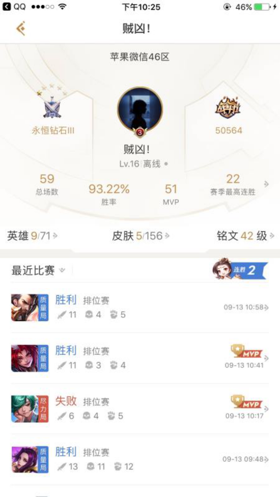 从数据查看该主播胜率非常高,仅仅用了59场游戏就上分到钻石3分段,并且从游戏使用的英雄来看非常丰富,并非像代练常用单英雄的方式进行上分,因为这次封号的遭遇可能将止步这次狮吼直播平台的上王者活动,因此或将丢失10万元大奖的丰厚奖金,实属冤枉和遗憾,腾讯官方也是非常严苛的查封游戏账号,为了游戏和谐社会感觉非常严谨,不过是否也会有误封的情况发生让我们也是打个问号?