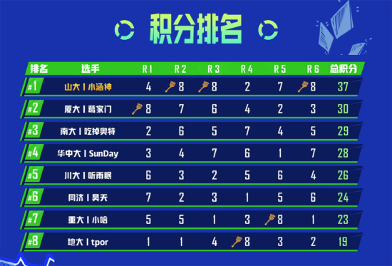 最终,在经历了六场巅峰对决后,来自山东大学的女学霸小涵神凭借着精彩的运营表现,以3次登顶,总分37的好成绩,成功夺得单人赛冠军。