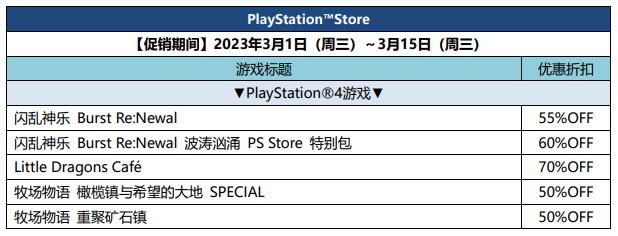 本次活动中,有《闪乱神乐 Burst Re:Newal》、《Little Dragons Cafe》、《牧场物语 橄榄镇与希望的大地》等6款作品进行优惠促销。机会难得,千万不要错过!