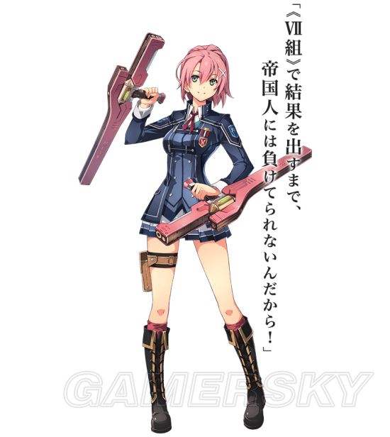 旧克洛斯贝尔出身的充满正义感的少女。憧憬着解决了不少大事件的克洛斯贝尔警察“特别任务支援科”就读了警察学校,但因为被埃雷波尼亚帝国占领了,她的梦想化作了泡影。