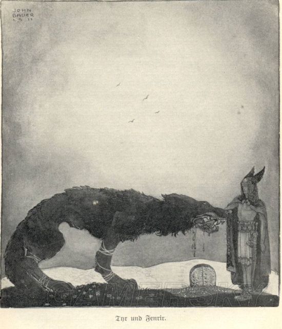 这时提尔以自己的右手作为保证,放入魔狼的口中,芬里尔因此相信诸神才甘愿被缚。