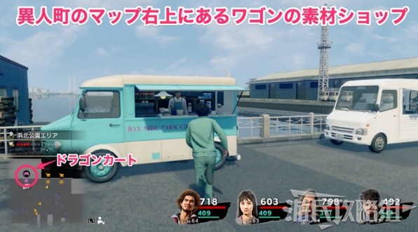 前往【伊势佐木异人町】右上角【滨北公园区域】,在【神龙赛车】右侧的蓝色货车商店可以购买大部分的素材。