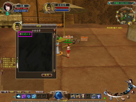 创建公会 2010-01-05 14:04 新浪游戏 0 人多力量大,是不是感觉只身一人非常孤单?那么申请帮派吧,大家同进退。申请要求:等级达到15级,并且身上拥有10金,可在公会管理员那里创建一个公会。申请方式:去沙城寻找“公会总管”NPC,进行对话,选择“创建公会”选项后弹出对话框,写入需要组建的公会名称,点击“组建公会”后公会组建成功。公会建立成功,点击公会按钮(快捷键:G)打开公会界面。点击公会界面的添加成员,输入想要添加的玩家名称,即可让该玩家进入公会。