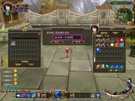 点击背包按钮,打开背包界面,点击背包界面的“摆摊”按钮,打开摆摊界面。