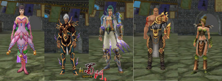 (从左往右依次为:紫荆套装、紫晶套装、烈焰套装、戒律套装、雨燕套装)