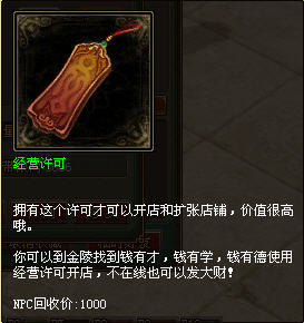 拥有经营许可,可开玩家商店了。
