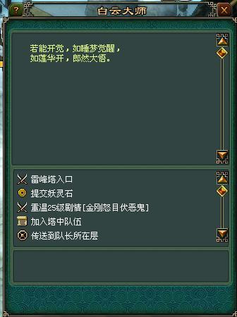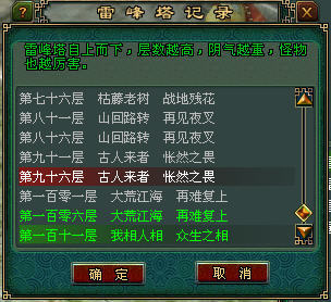 玩家可每隔五层保存记录,下次则可直接进入该层雷峰塔。(玩家升级后,可自动记录低于自己等级的层数。)