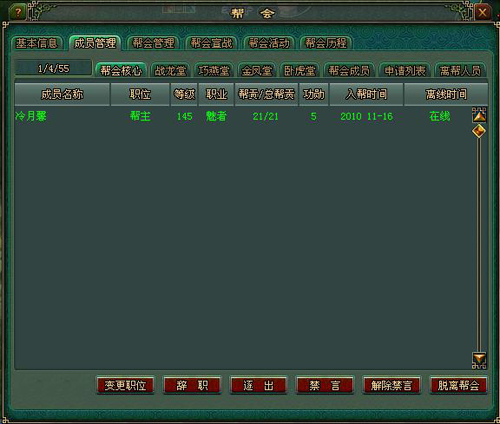 玩家可以在帮会管理-成员管理界面查看帮会成员的职业,职位,等级,上线离线时间等数据。
