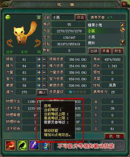 所有的灵兽天生就会进行基本的物理攻击或者法术攻击,玩家可以在灵兽的界面中查看自己灵兽的默认攻击属于物攻还是法攻。但是除了默认攻击外,灵兽还可以学习更强大的技能来提高主人和自己的能力。