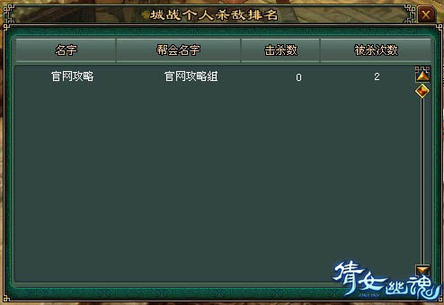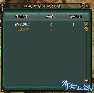 你可以点击城战统计按钮查看城战的个人杀敌和帮会杀敌的统计: