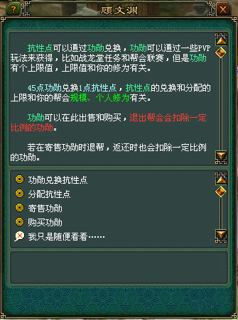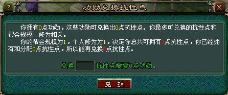 功勋兑换抗性点和可分配抗性点的数量和玩家本身的修为等级,玩家所在的帮会规模相关。