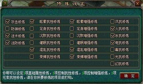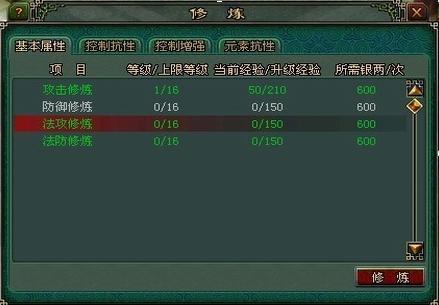 控制抗性修炼:提升玩家对六大控制技能的抗性,是非常重要的修炼项目