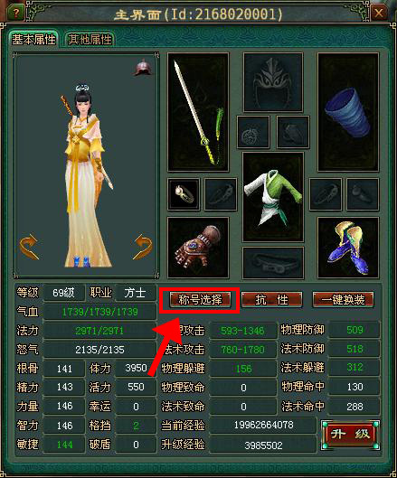点击人物属性界面(快捷键“Z”),并点击界面中心位置的“称号选择”按钮,进入后可以更加方便的查看当前佩戴的称号,以及还未领取的称号(不可用)。