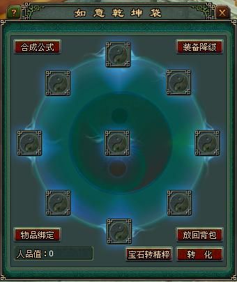 公式. 1个或多个法宝+(任意宝石)=1个法宝规则:1个或多个法宝可转换为1个法宝,放入的法宝数量越多,等级越高,以及放入的宝石等级越高,获得好法宝的概率越大。