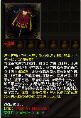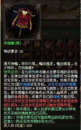 注意1:设置了目标的夺魂幡允许交易,你可以选择自己杀死仇家复仇也可以寻找等级更高的朋友帮助。