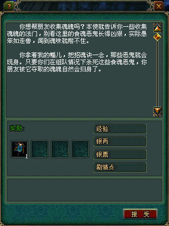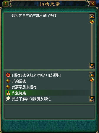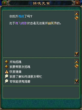 2.在招魂无常那里选择“我要帮朋友收魂”,可以获得协助收魂任务。
