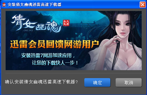 当点击“迅雷极速下载”按钮后,若电脑装有迅雷下载软件,则会询问是否下载倩女幽魂迅雷高速下载器,点击确定后可开启迅雷极速下载。