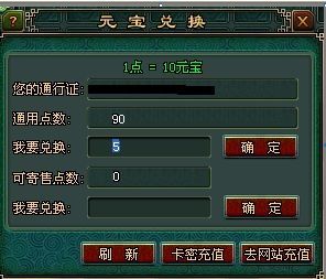方法二:在点卡经销商/零售点告知零售商您的游戏账号,直接给账号充值通用点数,冲值成功后,可登陆游戏后可以兑换元宝。