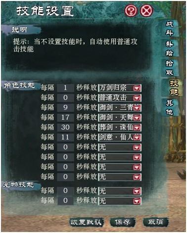 自动施法技能设置界面