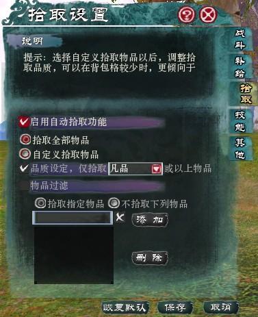 拾取设置界面