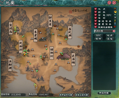 玩家按“M”键,游戏中出现当前大地图,玩家可左键在大地图中点选角色将要到达区域,游戏角色将自动到达。