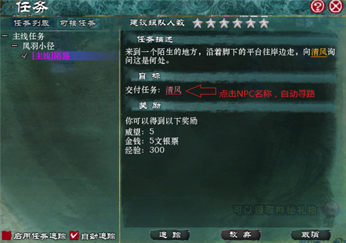 游戏界面中会遇到各种链接,左键点击链接,将自动寻到目标所在地。