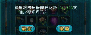 鼠标变为修理的锤头动画,玩家点击包裹栏里的装备、自身穿着的装备、宠物的装备,进入修理判断: