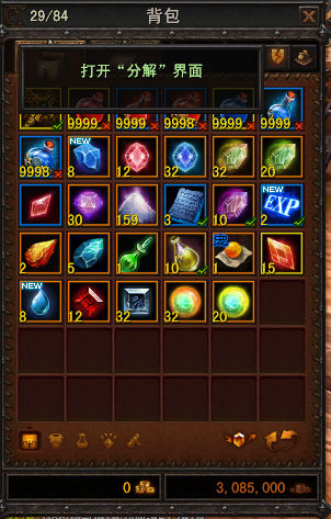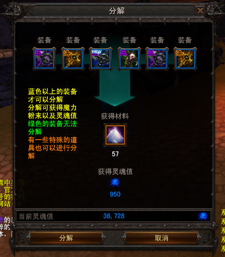 1、绿色品质的装备无法分解。
