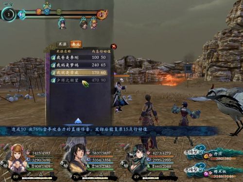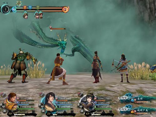 分离之后,将迎来几场非常痛苦的战斗。首先是【太华山】的灵天斗部,本身倒不难打,但是皮厚肉糙特别烦人,用合体技能耗了二十分钟才耗死。而且 这还不算BOSS,释放了凤灵之后的姜尚才是主菜。姜尚的战斗不用想着取胜,拖个20回合(左上角数字)就可以结束战斗。姜尚此战的属性是水,主要并不在 于他技能的伤害,而是“冻肢”(眩晕)与“水滴石穿”(封奥义)效果,最好有40级左右,不至于被他一个群攻技能全部秒杀,有人被冻住了要尽快解冻,反正 打不过,拖时间就赢了。(最后一场的黑龙战,建议扔键盘,反正必败)
