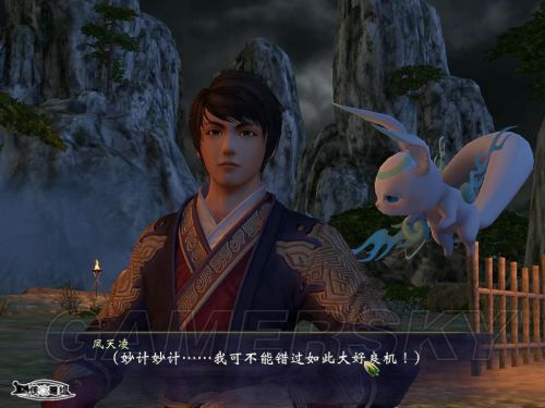 3.练剑至深夜,再闻箫声,凤天凌擅自决定去抓获女鬼;却遇见了一个金发异族少女,似乎认识自己,与其交谈。尔后少女离开,凤天凌才想起自己来的目的,追出幻境,发现天已大亮;