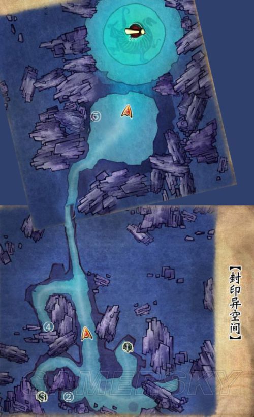 (真是何苦)又是一番折腾,到达【魂果秘境】的时候,白王才告知这里是极寒之境,是属于死人的世界。(注意这是一个分叉路口,一条路是通往山上,另外一条白色的才是进入极寒之境的。)【魂果秘境】的地图大致是这个样子的。