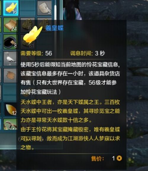 天涯明月刀怜花宝藏玩法全指南,挖宝进阶攻略。如何找到怜花宝座?怜花宝藏的开启时间是随机的,在开启前一分钟,系统会有相关提示。活动开启后,使用義皇蝶,请注意区分義皇蝶和天水蝶,5秒后可在当前地图会显示怜花宝藏所在的大概位置及数量。
