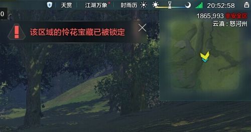走进怜花宝藏区域屏幕右上角会有提示让你使用璇玑镜,只有4人全部到达时才可以使用璇玑镜并开启寻宝模式。若已经被其他玩家占领则会提示该宝藏已经被锁定。