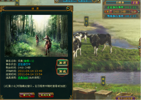 生产物品操作为自动托管安排进日程表(此窗口可最小化),可以使用加速。