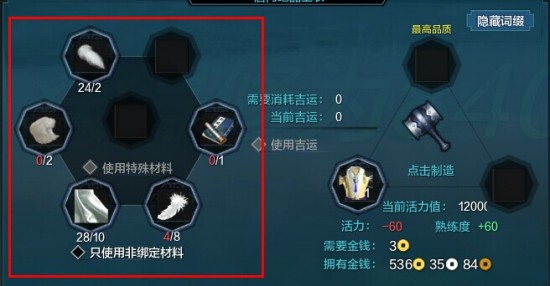 首先是绿色材料,如锻铁,锦缎这些,他们的获得的方式比较多,挖宝,缉拿以及副本都能获得大量的这种材料。通常他们有一个属性,可以制造一个系列的所有装备,拿锦缎为例,所有防具我们都需要用到他,而锻铁,则是所有武器、马具、饰品等。