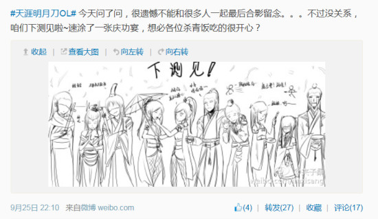 本次测试即将告一段落,随着月底关服的消息传来,玩家们纷纷开始告别。有的和自己的小伙伴告别,有的和天刀告别。今天小编就给大家带来了五花八门的告别方式,大家一起来感受一下吧!