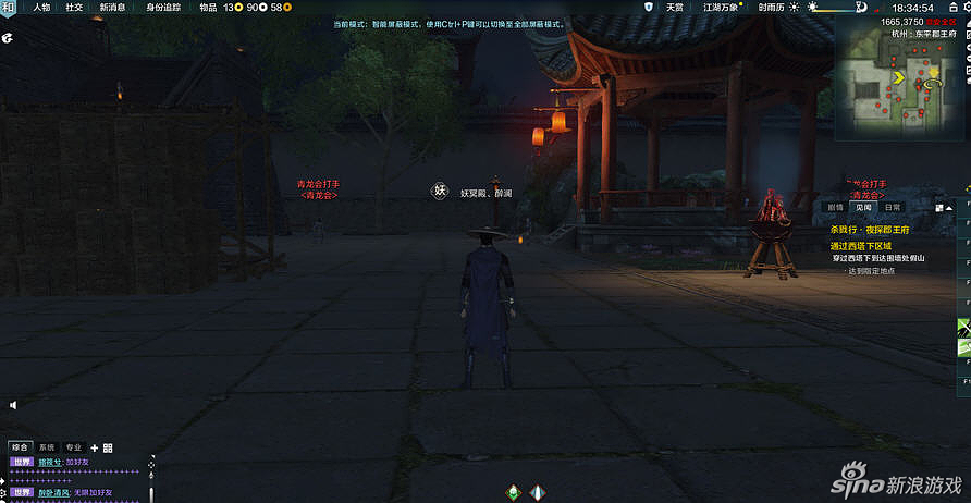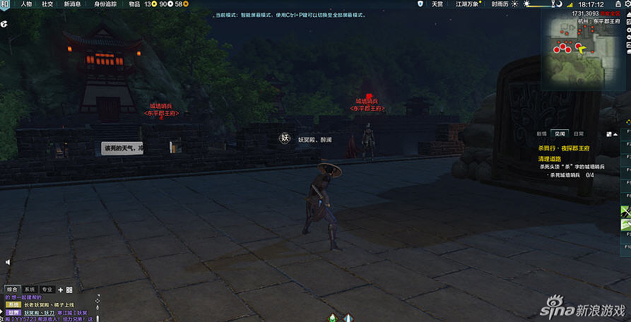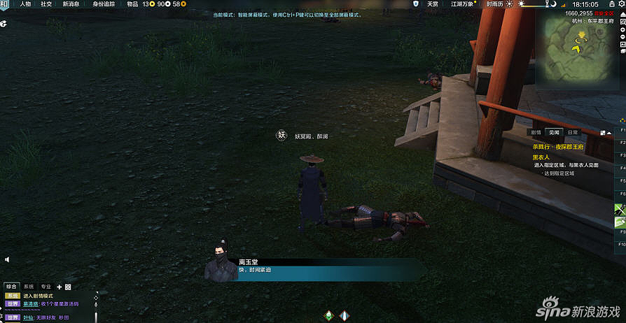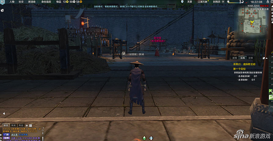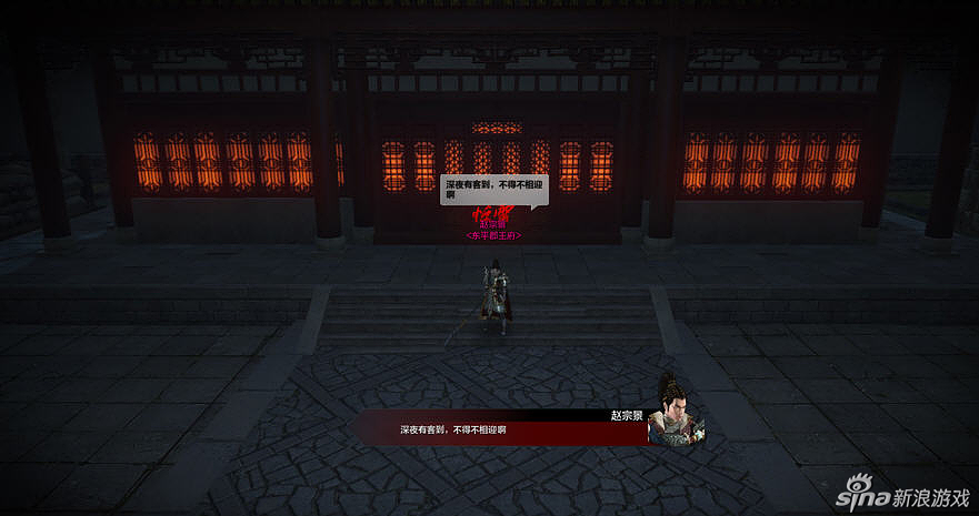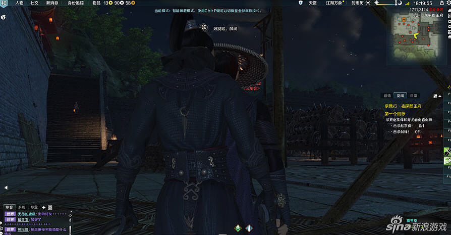 请注意,在给与你任务时请看地图上的深红又很大的标记,那才是让你刺杀的目标,这时下了楼梯,会有来回巡视的士兵,建议大家可以冲出去暴露自己,把士兵全部吸引过来,这时你自己门派的技能 就会恢复,把这群小怪一网打尽。