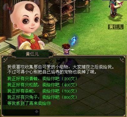 《问道》游戏资料黄仨儿收宠 2014-10-15 18:45 新浪游戏 0 初入道界,想要找个挣钱的途径吗? 揽仙镇的黄仨儿最喜欢青蛙、松鼠、蛇、兔子一类的小动物,如果能抓到这些宠物交给他,就能获得不少的金钱。