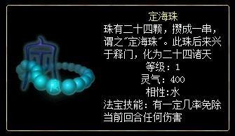 定海珠:有一定几率免除当前回合任何伤害。但最高只能免除一次伤害。