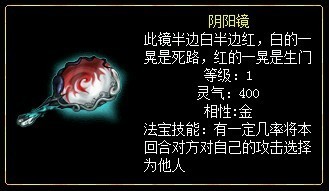 阴阳镜:有一定几率将本回合对方对自己的攻击选择为他人。