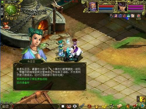 1、携带娃娃到乐豆豆处,支付一定的金钱和战斗值便可以接取亲子任务,战斗值可以通过娃娃的之间的比武获得。
