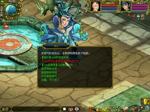 3、收集到材料后,找到龙女,提交首饰与其相对应的材料,有几率将首饰升级到150级,并增加一次可转换属性的机会。