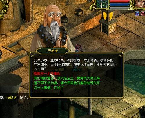 3、回到轩辕庙无想僧,无想僧让玩家去找逍遥仙了解情况,请教请教。