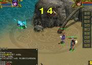 2、来到北海沙滩,与北海沙滩的老渔民了解中,了解到很多乡亲出海打鱼常连人带船失踪,为除妖孽与鱼人怪的战斗,发现小妖直呼大王报仇,胜利后急忙返回轩辕庙告知无想僧妖物可能会出现更厉害的怪物。