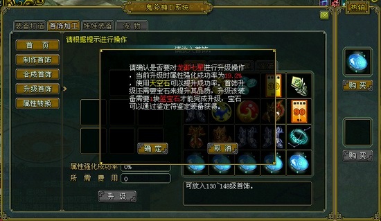 2、首饰累积一定经验后,可以使用首饰相应等级需要的宝石在NPC龙女处进行升级;