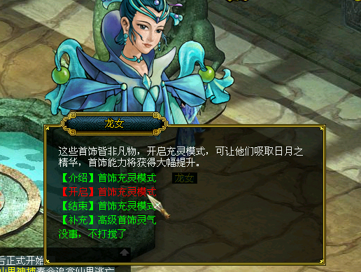 5、每次能在首饰升级相关龙女处开启4小时首饰充灵时间,每天开启次数不限。